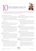 10PRE-WEDDING HAIR TIPS By Alwyn Rea from Oxygen Hair Design, Midleton, Cork.A FABULOUS BRIDAL HAIRSTYLE STARTS WITH PRE-WEDDING CARE. LONG BEFORE YOU TIE THE KNOT, OBSERVE SOME GOOD HAIR-WASHING HABITS TO MAINTAIN ITS OIL LUSTRE. YOU CAN ALSO TRY SOME HAIR COLOURS YOU ARE INTERESTED IN.1LOOKING AFTER THOSE LOCKSEnsure your hair is in tip-top condition by taking care of it during the six months leading up your wedding, so that your hair is beautifully shiny and healthy.I would highly recommend Kerastase products, speak to a Kerastase expert to prescribe the perfect hair plan to suit you.2FINDING A STYLISTRecommendation is the safest way to source a hair stylist. Book at least six months prior to your wedding day as the best get snapped up well in advance.3WHEN TO BOOK YOUR TRIALChoose your dress before attending your hair trial. The style of your gown will help to determine the styleof your hair. Then schedule your trial three months before the wedding to allow plenty of time should you change your mind about the style. Collect photo images of brides, celebrities, models, anyone whose 4look inspires you, to share with your stylist.REGULAR HAIRCUTSAt your trial your stylist can advise whether you need to grow your hair. If your hair is very long or unlayered it can be difficult to manage and style. This will limit the styles your stylist can show you at your trial. Regular trims are a necessity for healthy looking hair, so ask your stylist for advice on how often you should5have your hair trimmed.ON YOUR TRIAL DAYWear make-up to the trial and don’t allow too many friends and family to accompany you. Be clear about what you like and don’t like. You may need more than one hair trial to try different styles, this gives youthe chance to see what suits you best. Once you’ve completed the trial and you are 100% happy, make sure you take plenty of pictures as reference.6 COLOUR CHANGEIf you’re planning to change your hair colour, do so well in advance of the big day: your wedding week is not the time for a surprise7HAIR EXTENSIONSFor brides who are trying to grow their hair, extensions are great if you want to create a little more volumeor length and no one needs to know! Check out our Oxygen Clip-In Boutique; a private consultation area where we can apply and advise the perfect extensions or hair piece for you.8ACCESSORISEThere are so many great hair accessories available for brides now, but in keeping with the hairstyle, hair accessories need to complement one another. You may change your mind about accessories after the hair trial so ensure they are returnable .PRODUCT-FREE ON THE DAYHave clean dry hair on your trial and wedding day. Avoid using conditioner that morning (unless advised by your stylist), especially a leave-in one. Stay away from silkening products that can weigh your hair down, making it slippery for the stylist to work with. I advise my bridal clients to wash the hair the night before.WHAT TO WEAR ON THE MORNING OF THE WEDDING Remember to wear a button-down shirt when you’re getting your hair done on your wedding day, as pulling a top over your head is a big no, no!At Oxygen Hair Design we can take care of your hair right up until your wedding day, from colouring to cutting, applying hair extensions and, most importantly, making sure your hair is in its best condition by prescribing a Kerastase home care plan for you.The wedding journey 112Cork 20169 10