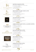 The wedding journey 78Cork 2016HAYFIELD MANOR HOTELPerrott Avenue, College Road, Cork City, Ireland T: + 353 (0) 21 484 5900E: enquiries@hayfieldmanor.ie www.hayfieldmanor.ieINCHYDONEY ISLAND LODGE & SPAClonakilty, West Cork, IrelandT: + 353 (0) 23 8833143E: reservations@inchydoneyisland.com www.inchydoneyisland.comTHE MONTENOTTE HOTELMontenotte, Cork, IrelandT: + 353 (0) 21 4530050E: reservations@themontenottehotel.com www.themontenottehotel.comCARRIGALINE COURT HOTEL & LEISURE CENTRECarrigaline, Co. Cork, Ireland T: + 353 (0) 21 4852100E: reception@carrigcourt.com www.carrigcourt.comROCHESTOWN PARK HOTELRochestown Road, Douglas, Cork, Ireland T: + 353 (0) 21 489 0800E: res@rochestownpark.com www.rochestownpark.comTHE TRIDENT HOTELWorld’s End, Kinsale, Cork, Ireland T: +353 (0) 21 4779 300E: info@tridenthotel.com www.tridenthotel.comCHARLEVILLE PARK HOTELE: sales@charlevilleparkhotel.com T: + 353 (0) 63 33700F: + 353 (0) 63 30577 www.charlevilleparkhotel.com